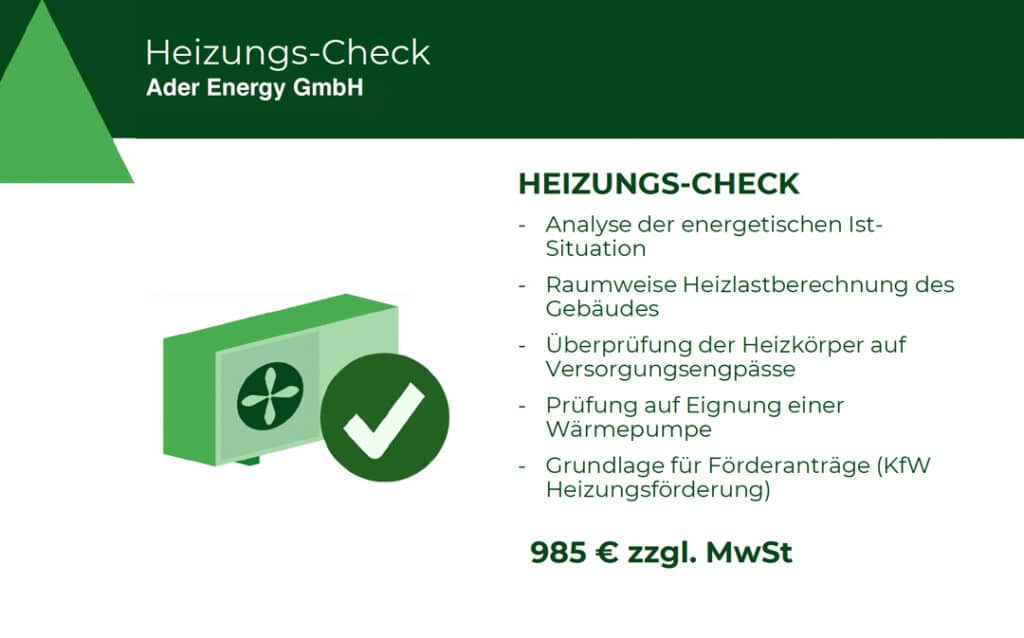 - Der Heizungs-Check ist förderrelevant und dient als Grundlage für die KfW Heizungsförderung.