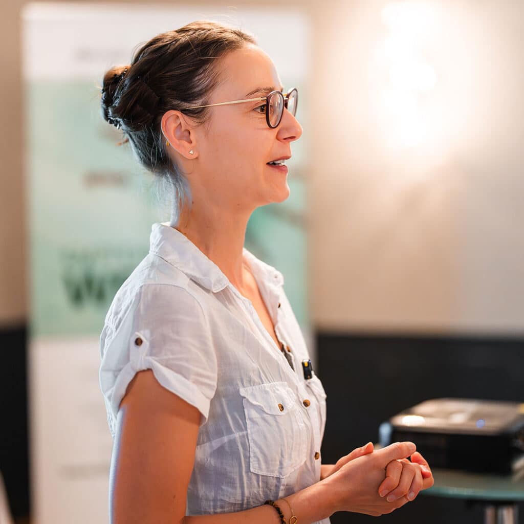 In ihrem 10-Minuten-Vortrag hat Melanie Wabro ihr Unternehmen Schreinerzeit vorgestellt – eine Kombination aus Schreinerei und Coachingwerkstatt.